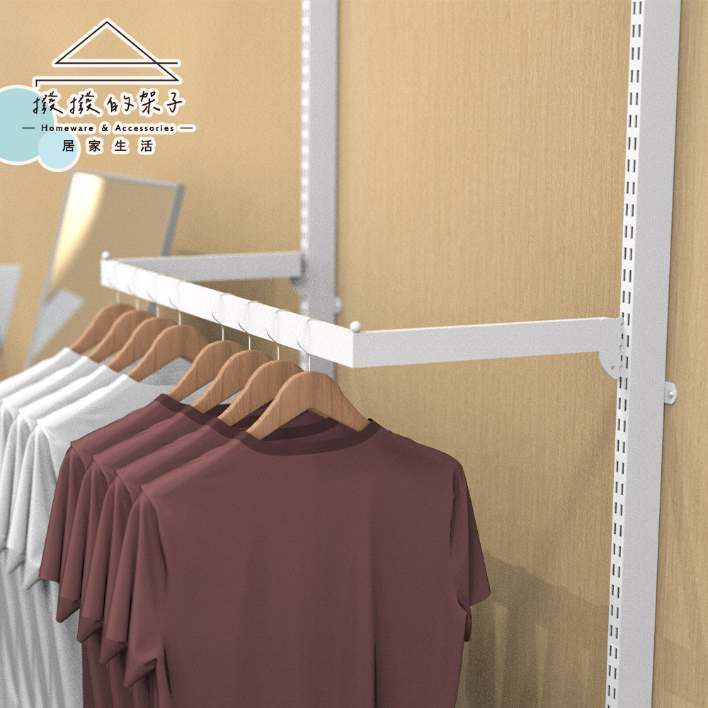 搭配落地式洞洞板架或是槽板架使用,可掛更多的衣物。