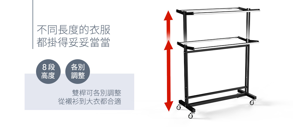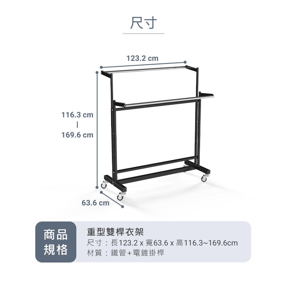 3、【商品尺寸】123.2(L)x63.6(W)x116.3~169.6(H)cm (含輪子)