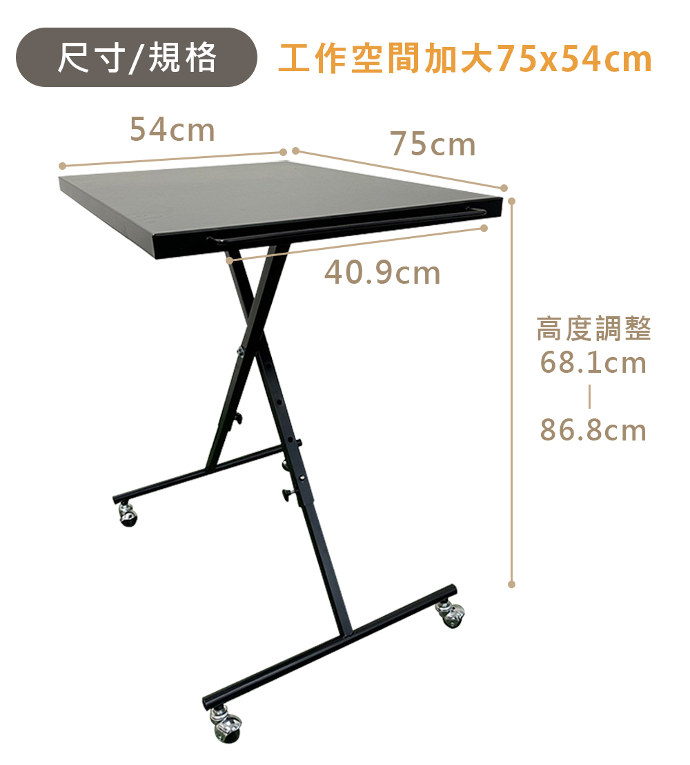 3、【商品尺寸】75(L)x54(W)x68.1~86.8(H)cm