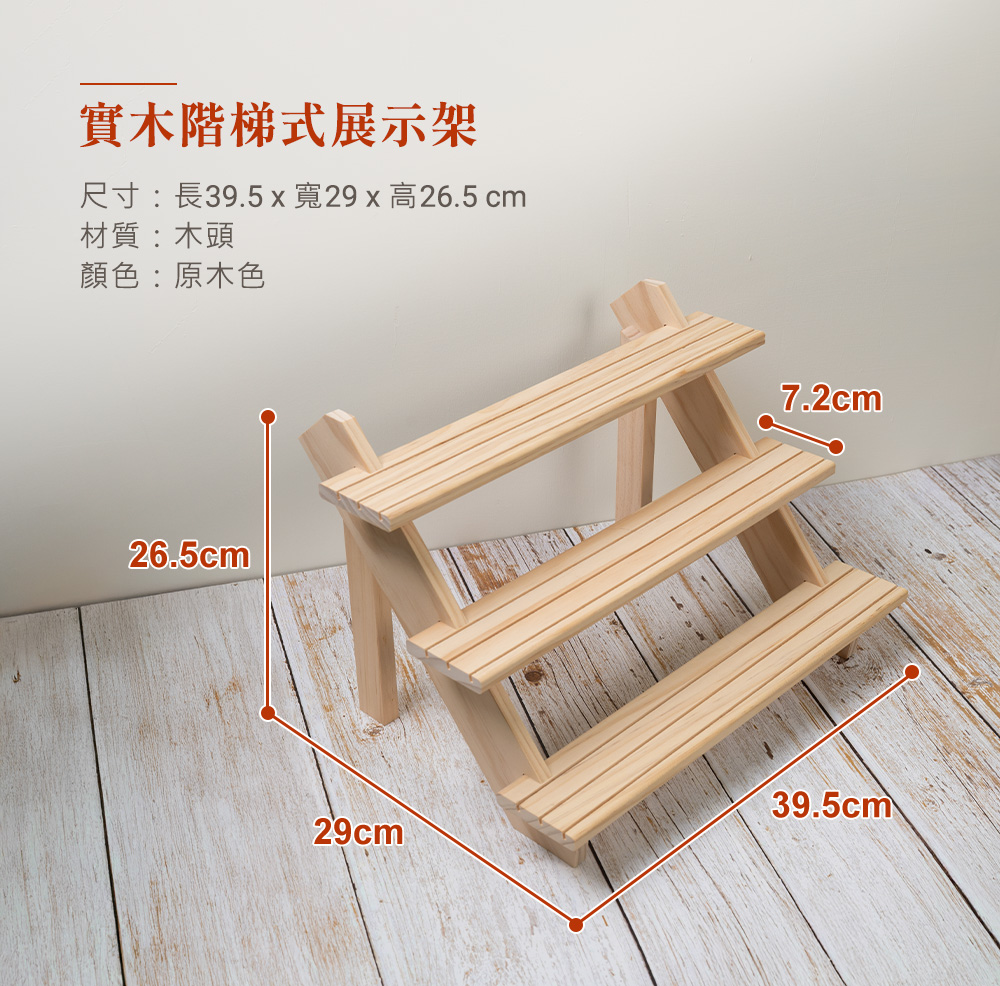 1、【商品名稱】三層實木階梯展示架