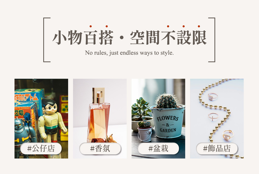 ✔溝槽卡榫輕巧承載卡片、飾品與小物,細節滿載巧思。