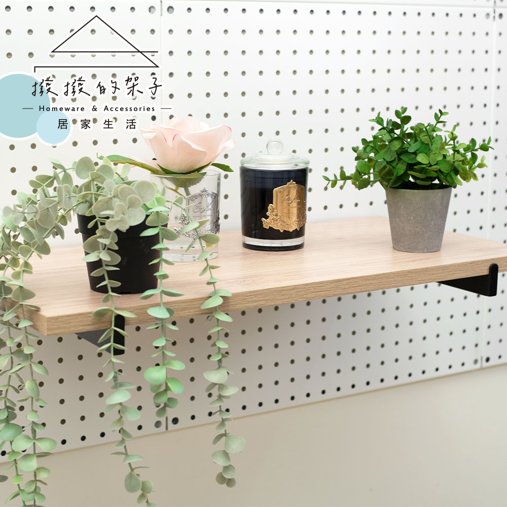 洞洞板木層板架,穩固又美觀,讓小物或商品能平整陳列。