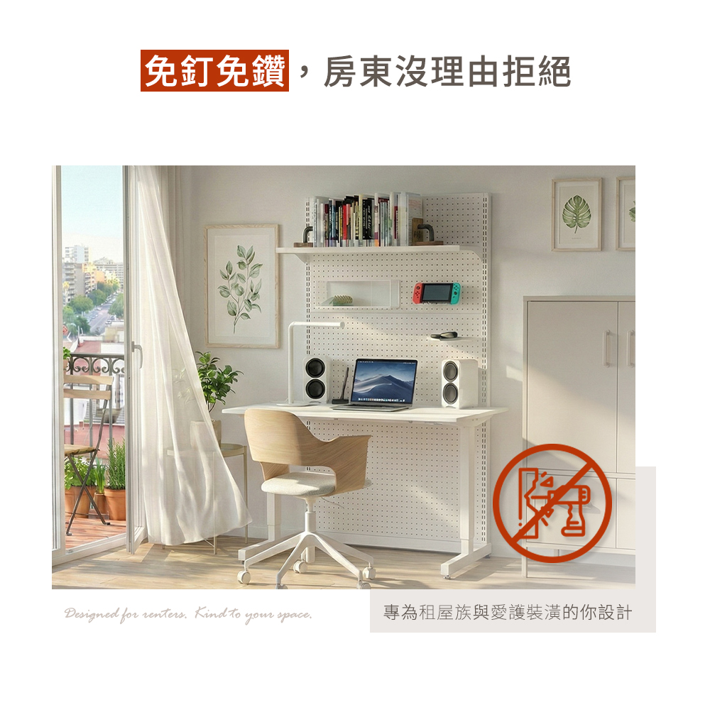 靠上書桌的洞洞板架,讓收納更為簡易。