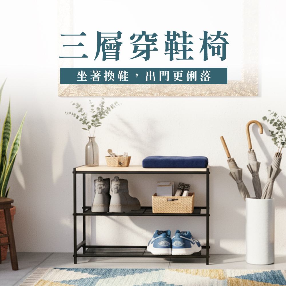 【撥撥的架子】多功能置物架 -玄關穿鞋椅