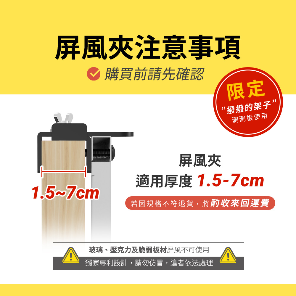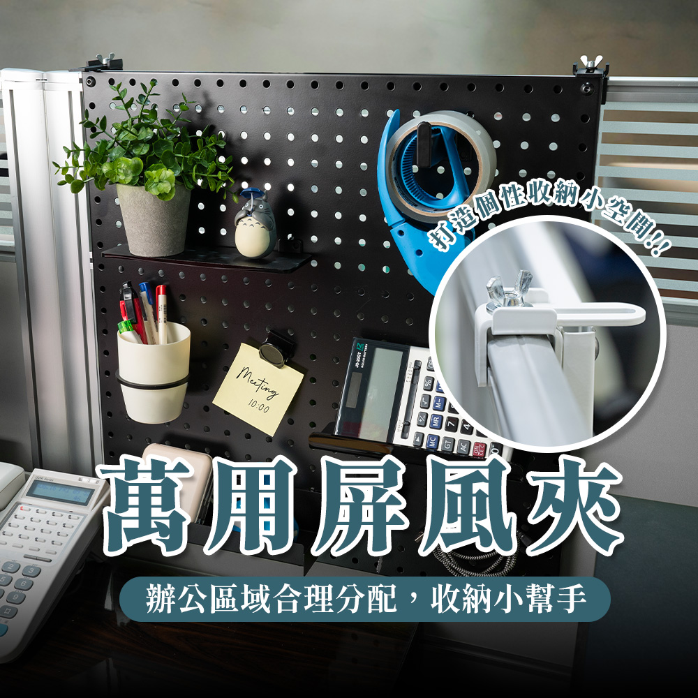搭配 懸掛式OA夾+洞洞板,只需固定在 1.5~7cm厚度的屏風,