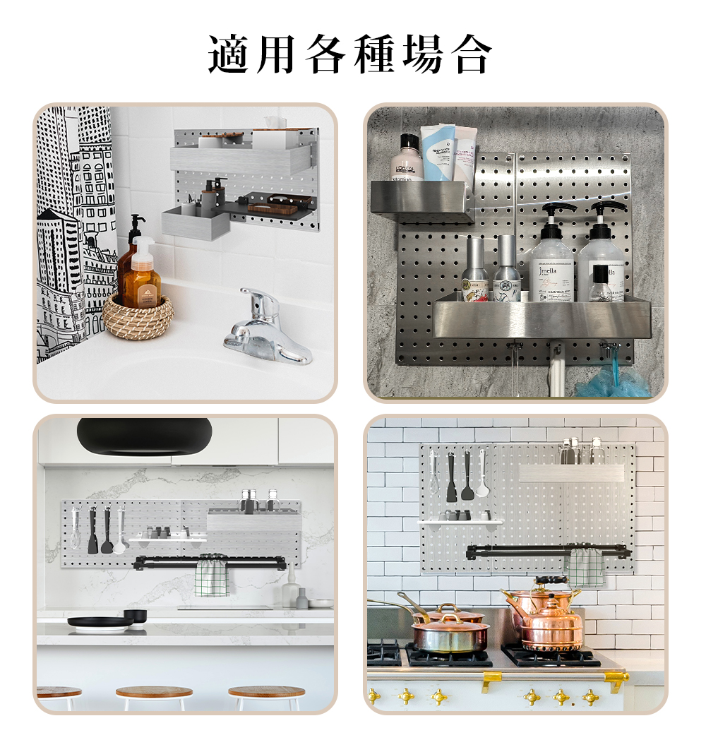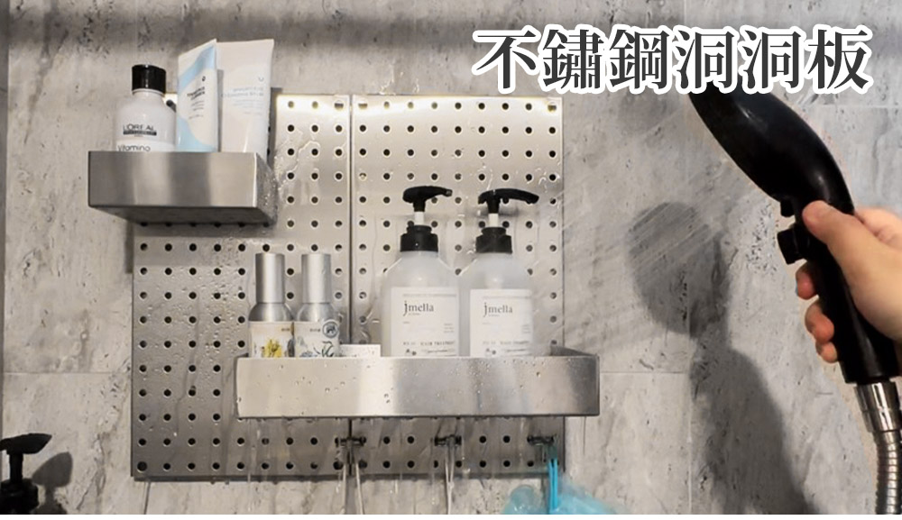 不鏽鋼洞洞板,專為浴室設計,耐潮防鏽,長久使用不變形。